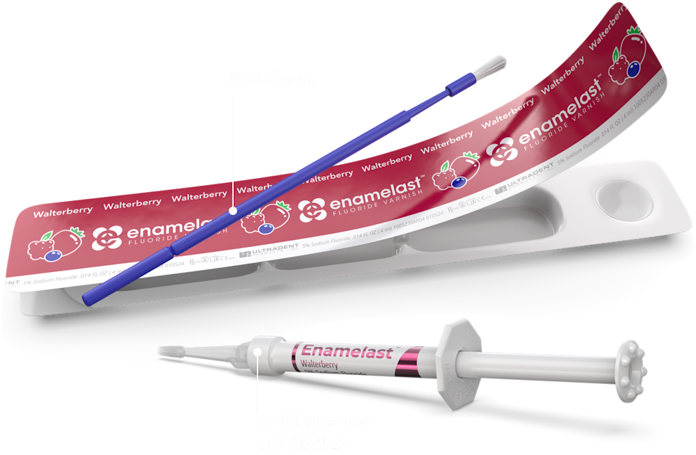 Als Darreichungsform in der Spritze steht die Geschmacksrichtung Walterberry zur Verfügung. Alle Enamelast Produkte sind nuss- und glutenfrei.